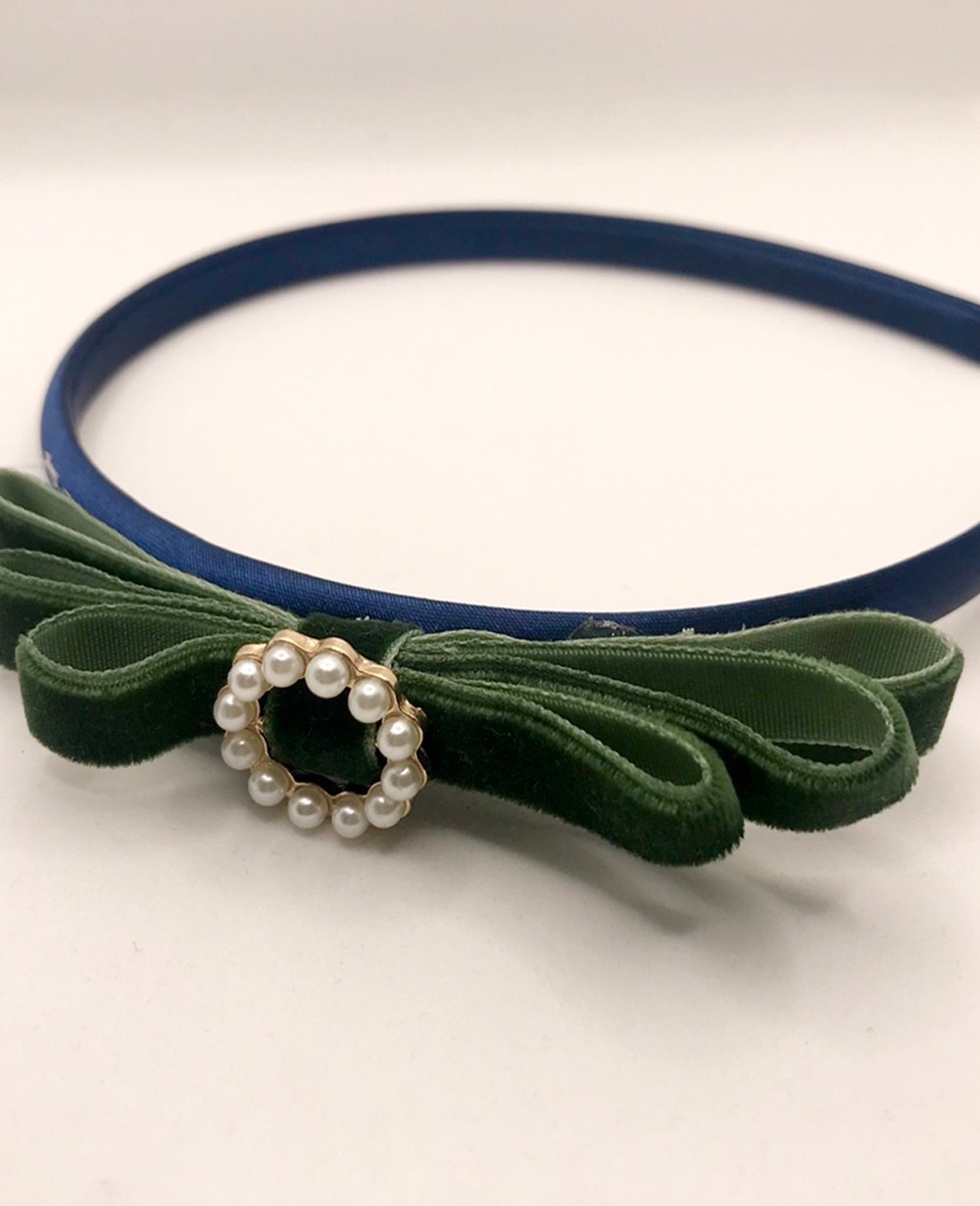 | 描述 | 这款墨绿色发箍有着精致蝴蝶结,蝴蝶结主要由墨绿色金丝绒织带做成,发带中心有着一个圆形珍珠扣做装饰,更显特别。 |